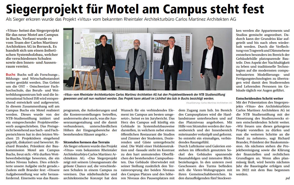 Am 15. Oktober 2020 wurden die Medien über das Siegerprojekt des Campus Motel orientiert.